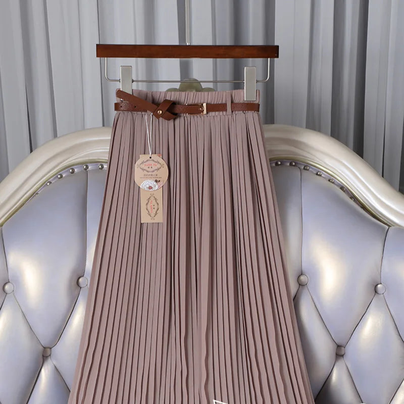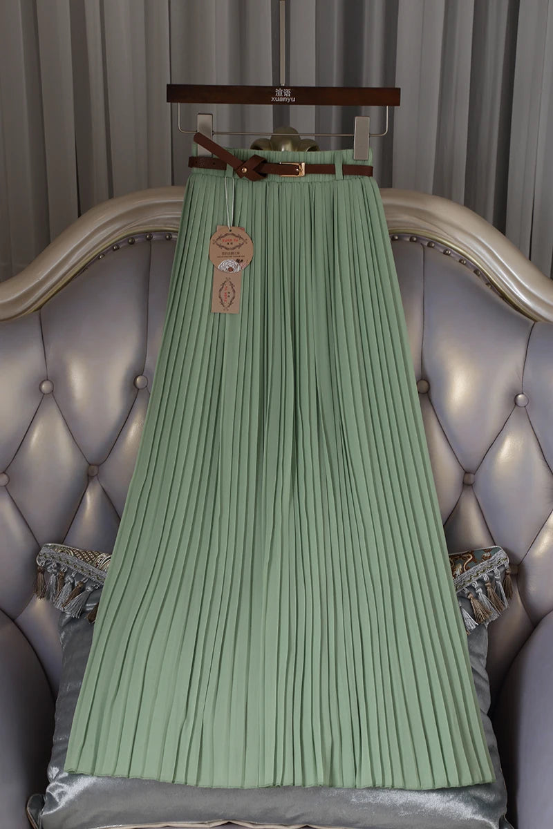 2021 High Quality Women Summer Skirt High Waist Vintage Women Pleated Skirt Saias Femme Boho White Long Chiffon Skirt Streetwear