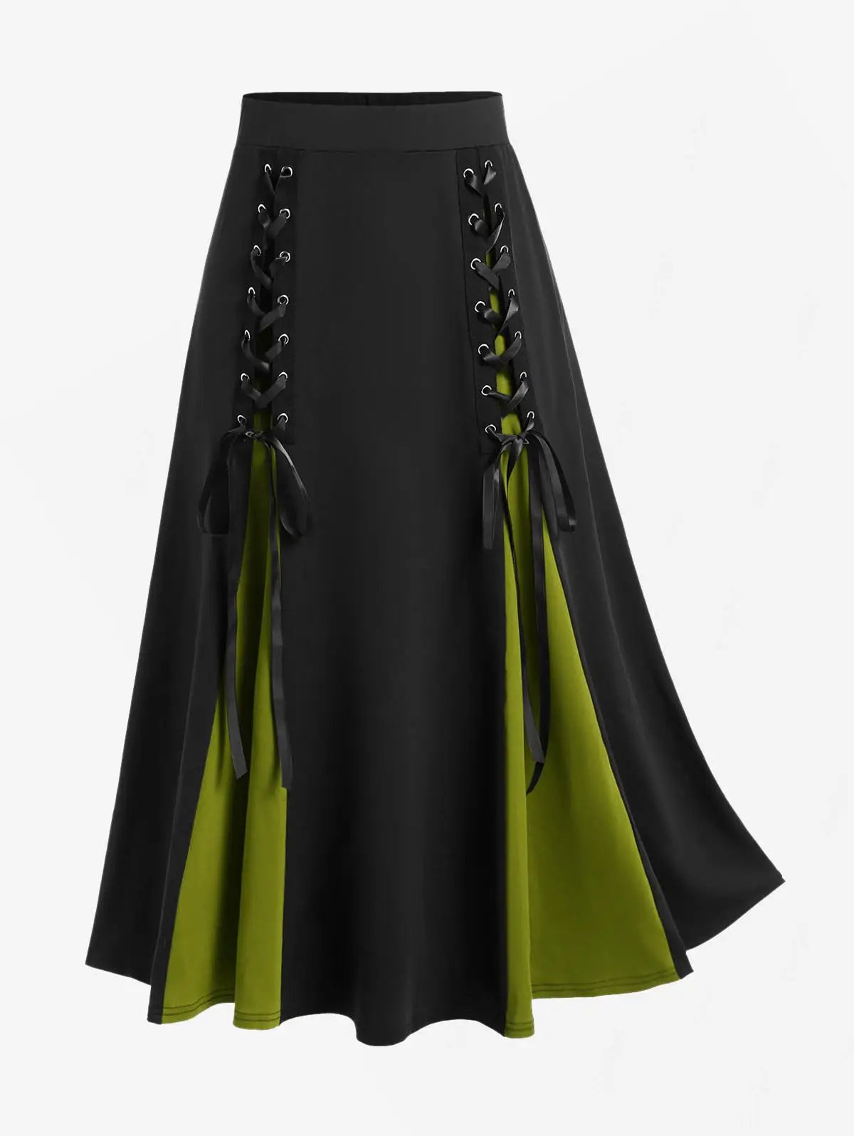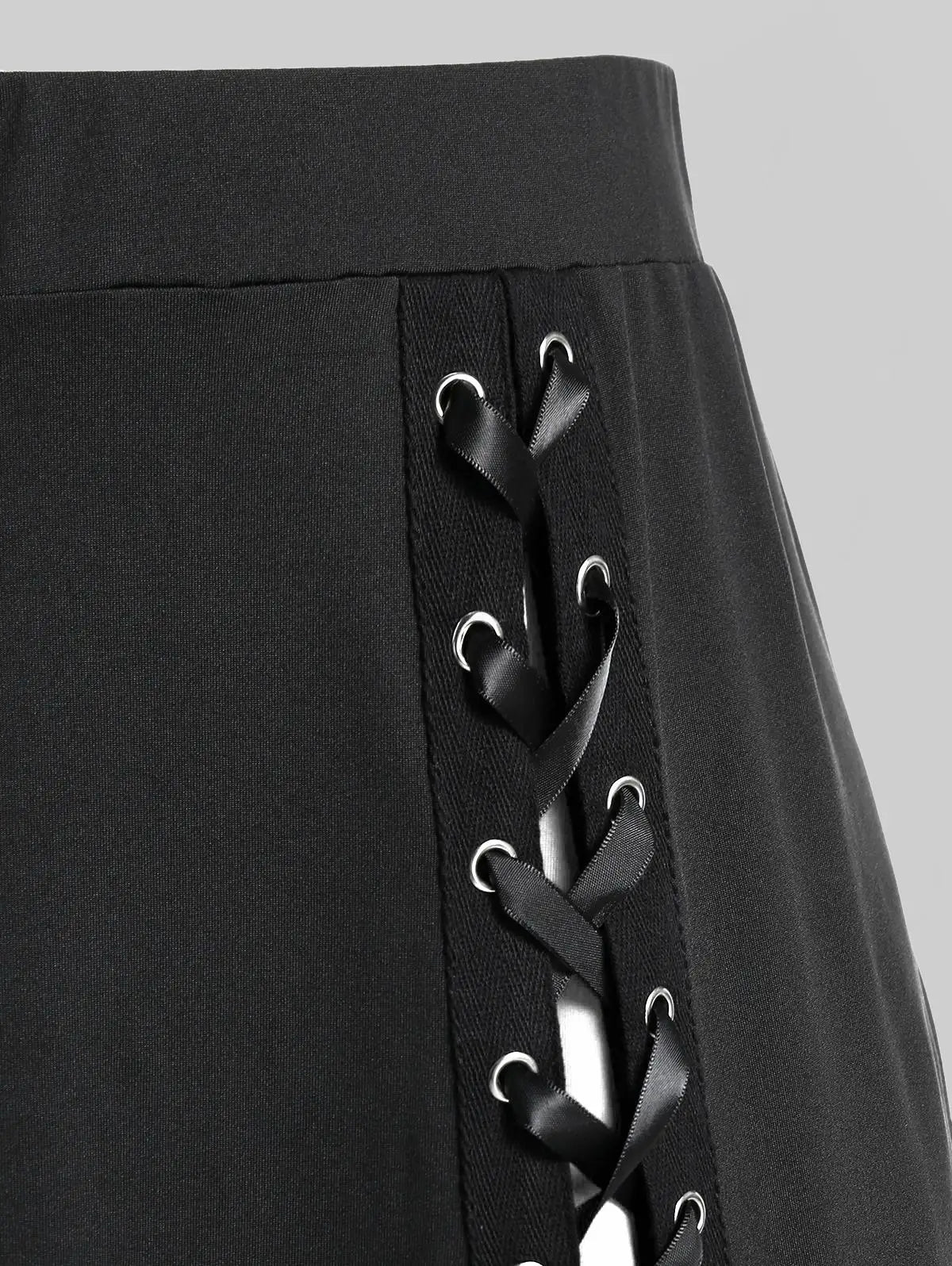Gothic Lace Up Godet Hem Midi Skirt